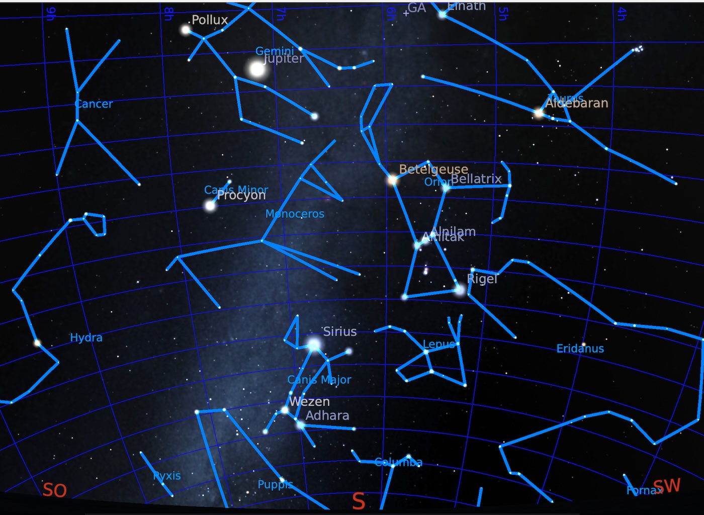 das um die Sternbilder Orion und Zwillinge verläuft.